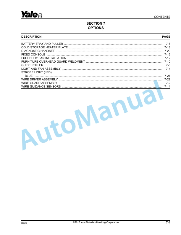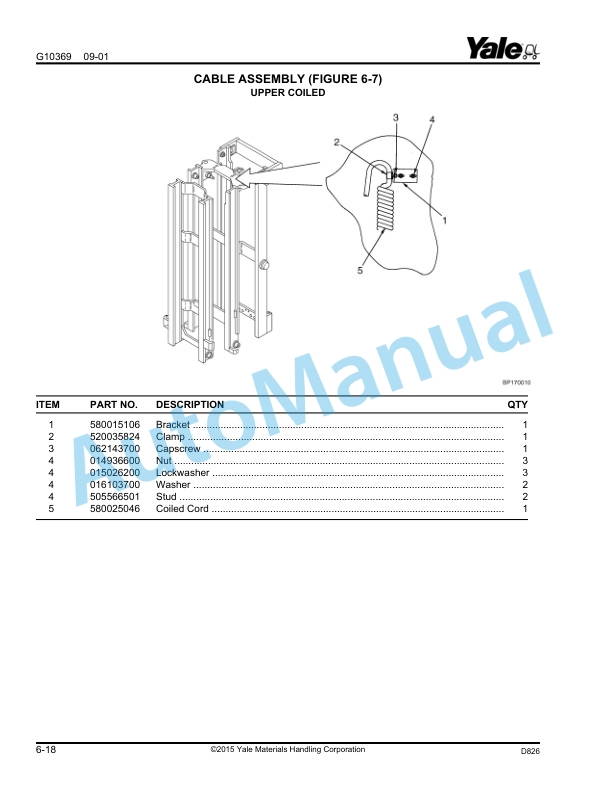 Yale D826 OS-SS030BE 3.000 LB. Capacity Parts Manual 524143600