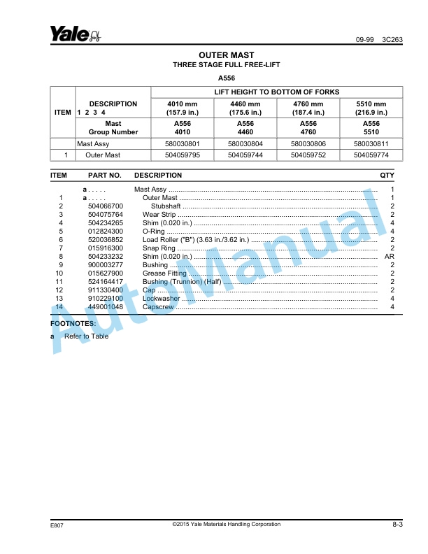 - 8.1. OUTER MAST THREE STAGE FULL FREE-LIFT