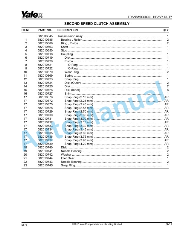 Yale Parts Manual PDF