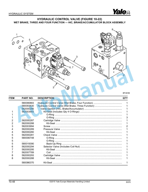 - 10.22. HYDRAULIC CONTROL VALVE WET BRAKE, THREE AND FOUR FUNCTION – HIC, BRAKE/ACCUMULATOR BLOCK ASSEMBLY