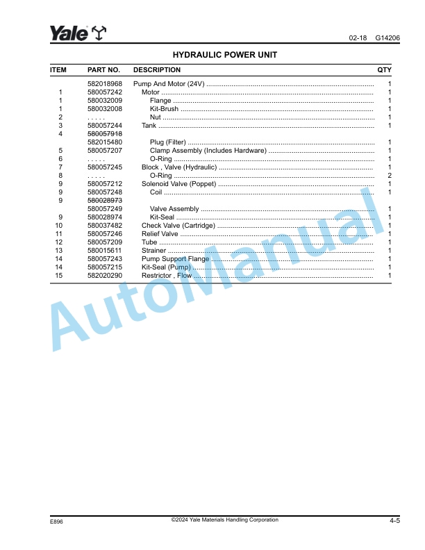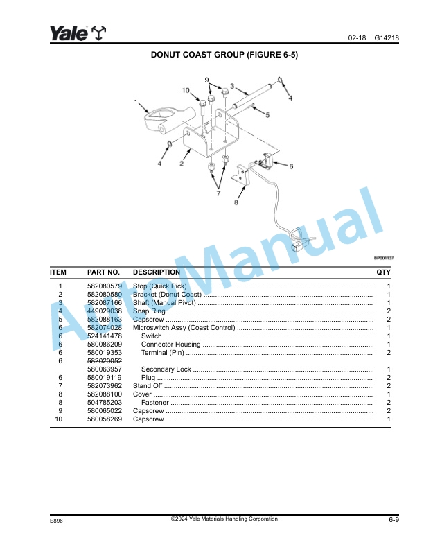 Yale A474 – A497 – E826 ss030bf, FS030BF, OS030BF Order Picker Parts Manual 550032957