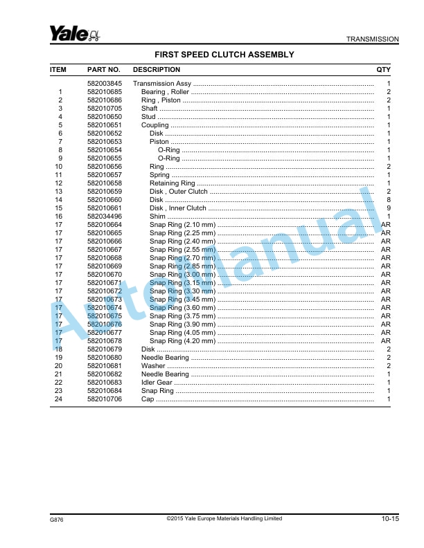 Yale Parts Manual PDF