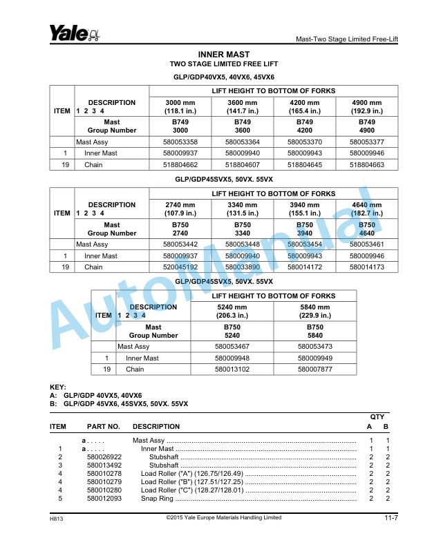 Yale H813 GLP-GDP40VX5, 40VX6, 45VX6, 45SVX5, 50VX, 55VX Parts Manual 550048586 - Image 5