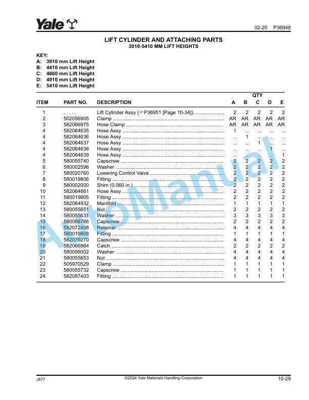 Yale Parts Manual PDF
