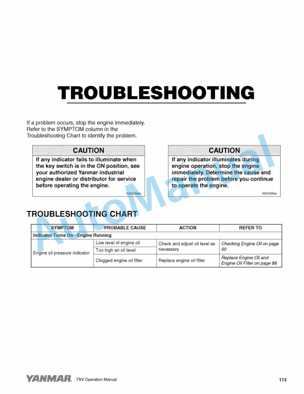 Yanmar 3TNV74F, 3TNV76F, 3TNV80F, 3TNV80FT, 3TNV88F, 3TNM74F Industrial Engine Operation Manual