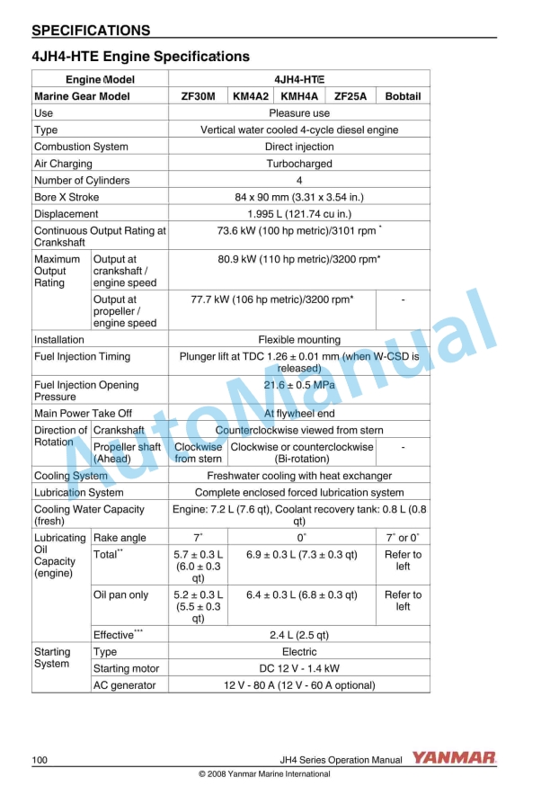 Yanmar 4JH3-TE, 4JH3-TCE, 4JH3-HTE, 4JH3-DTE Marine Diesel Engine Operation Manual