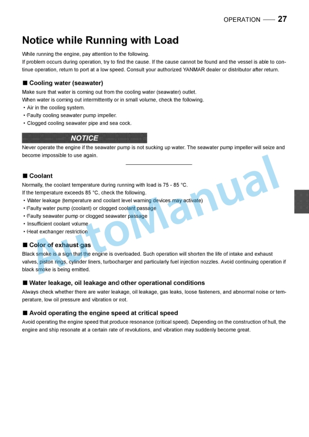 Yanmar 1GM10, 2GM20(F), 3GM30(F), 3HM35(F) Engine Operation Manual