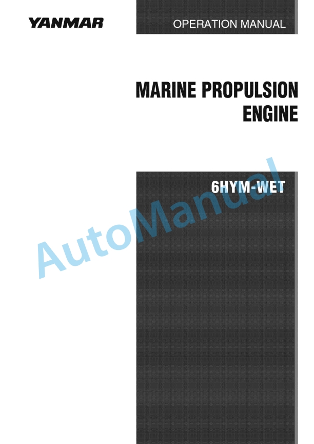 Yanmar 6HYM-WET Marine Propulsion Engine Operation Manual 0A6HY-G00201