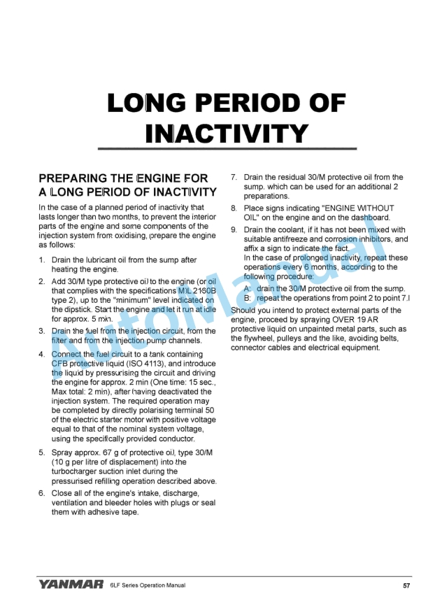 - 6.1. Preparing the engine for a long period of inactivity
