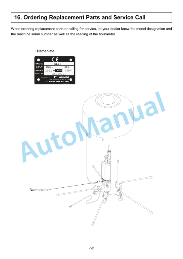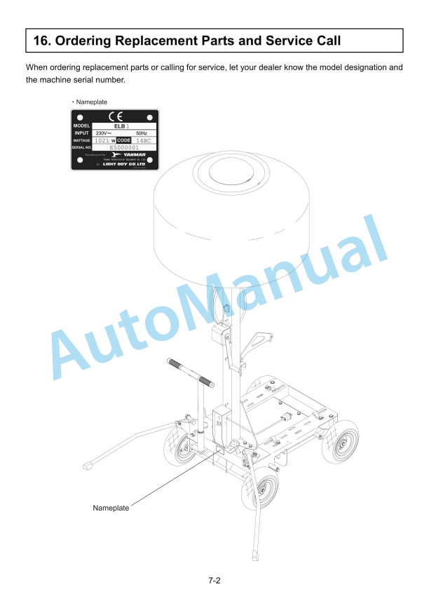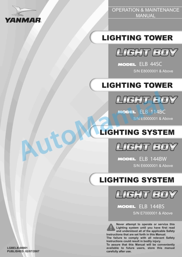 Yanmar ELB 44SC, ELB 114BC, ELB 144BW, ELB 144BS Lighting Tower Operation And Maintenance Manual