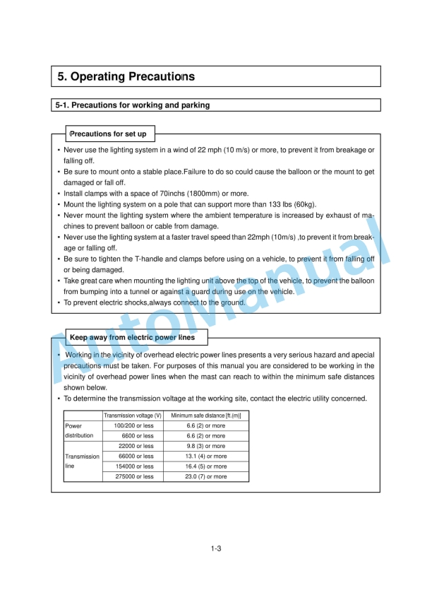 - 7. Precautions working and parking