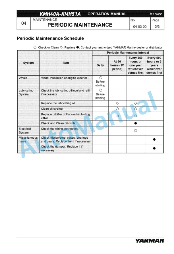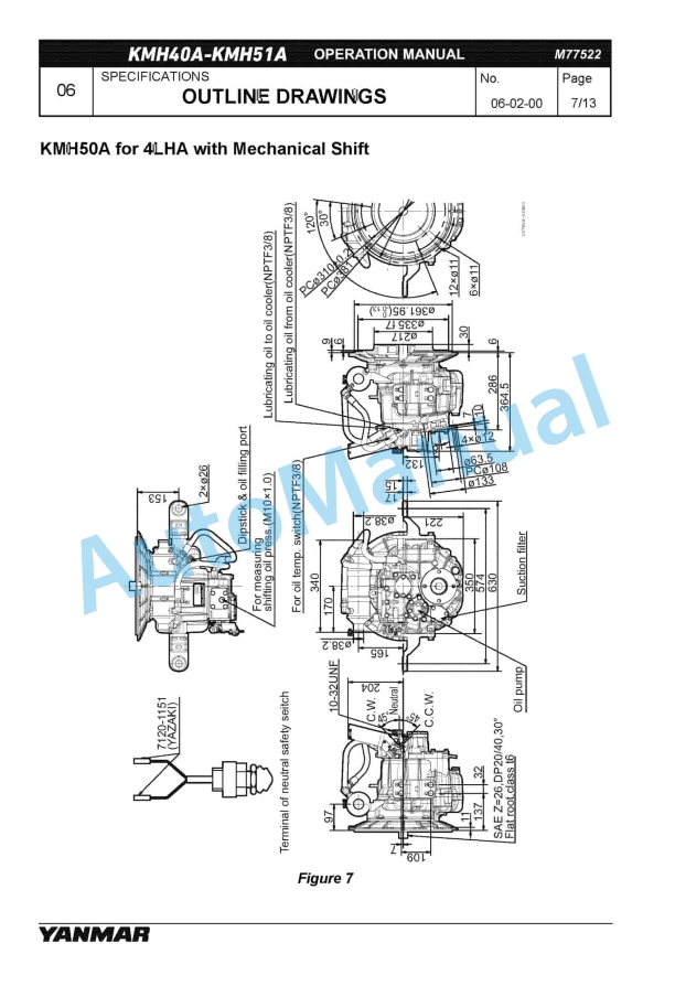 Yanmar KMH40A, KMH41A, KMH50A, KMH51A Marine Gear Operation Manual